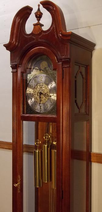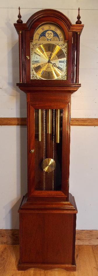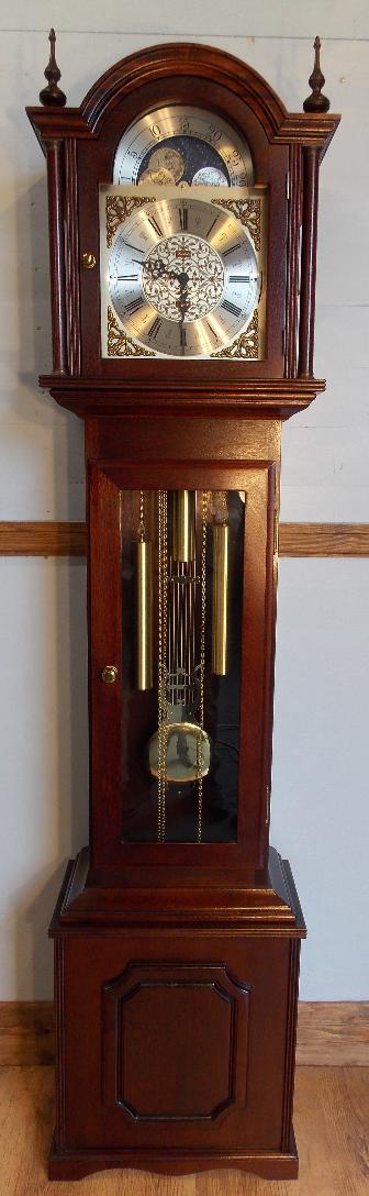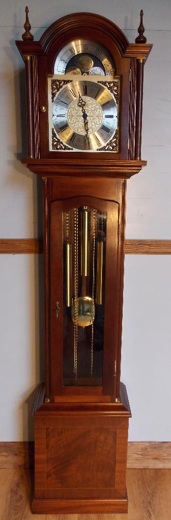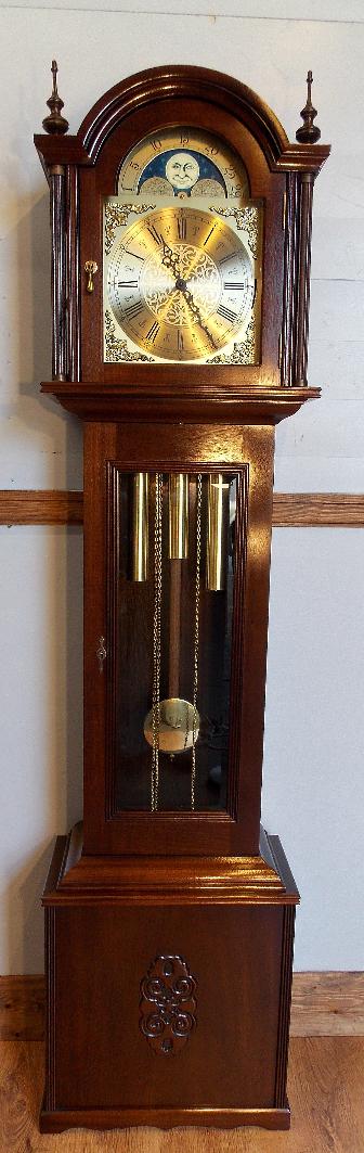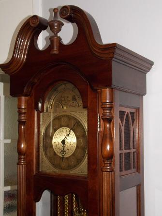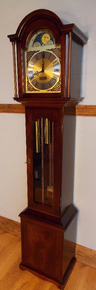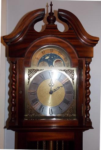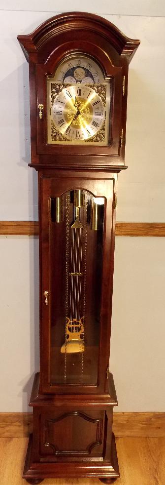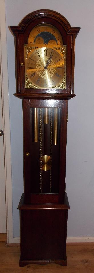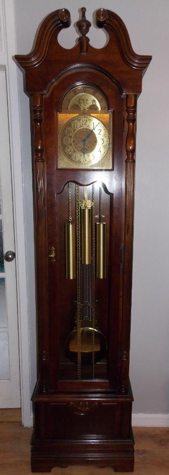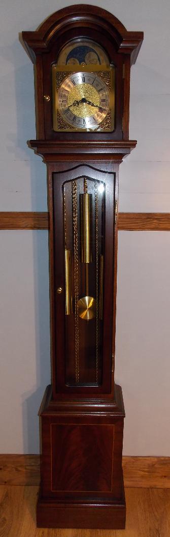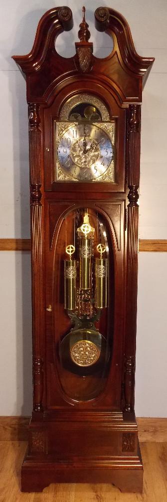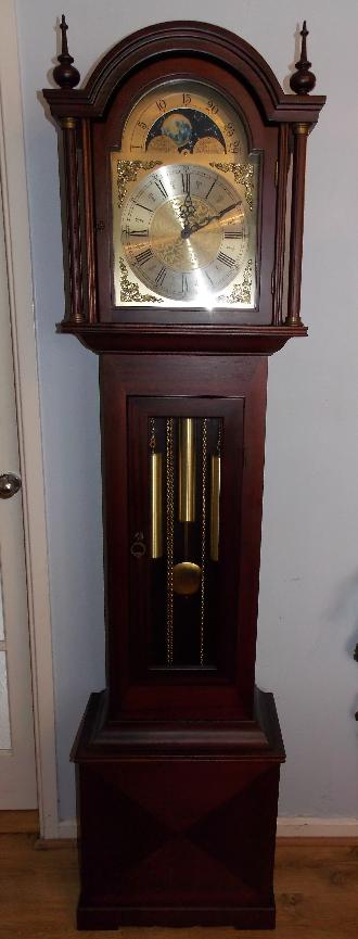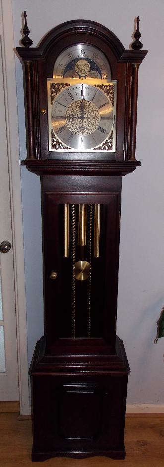 The clock is extremely well constructed in solid Mahogany. This is a top quality item, and would enhance any home! I have taken a number of pictures which will hopefully show the quality and condition of this beautiful clock.