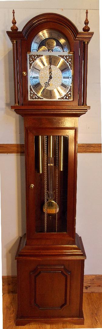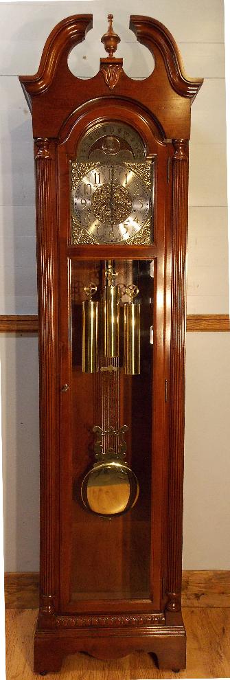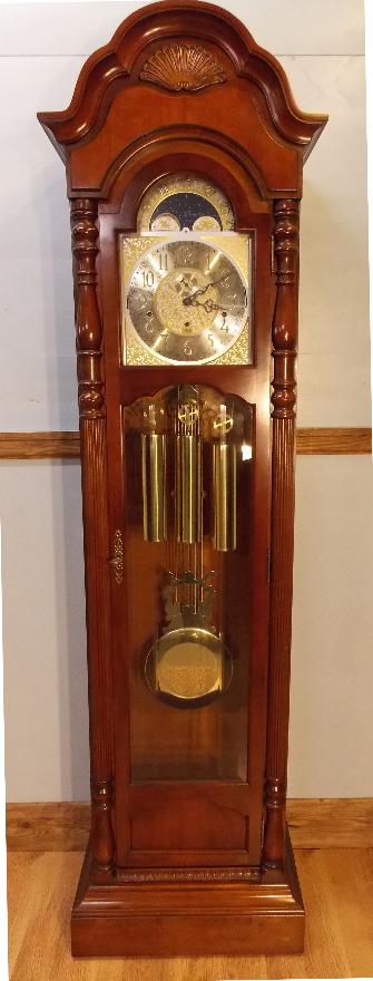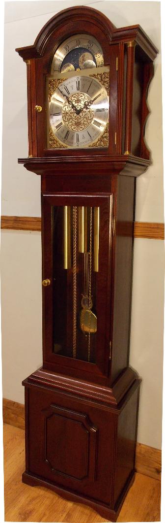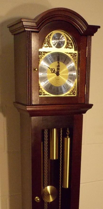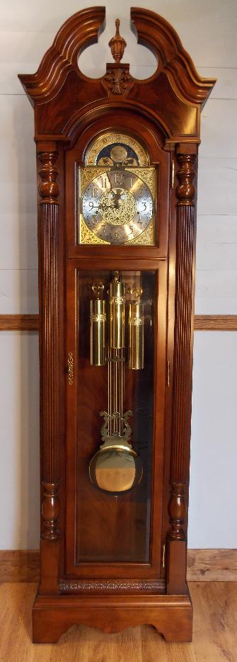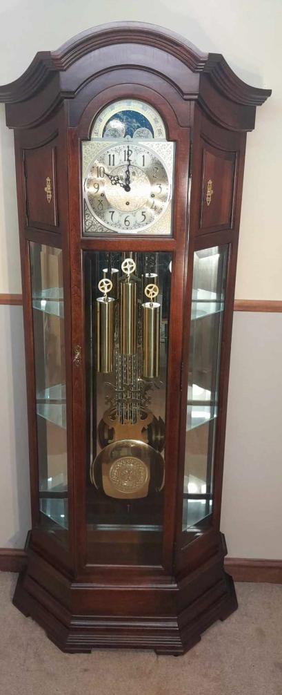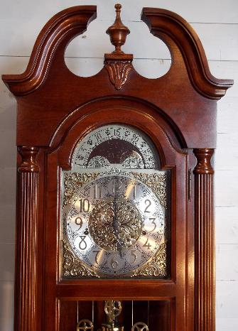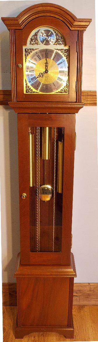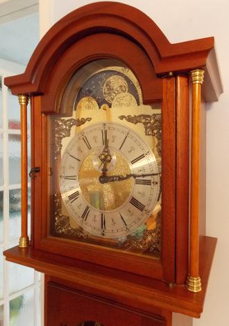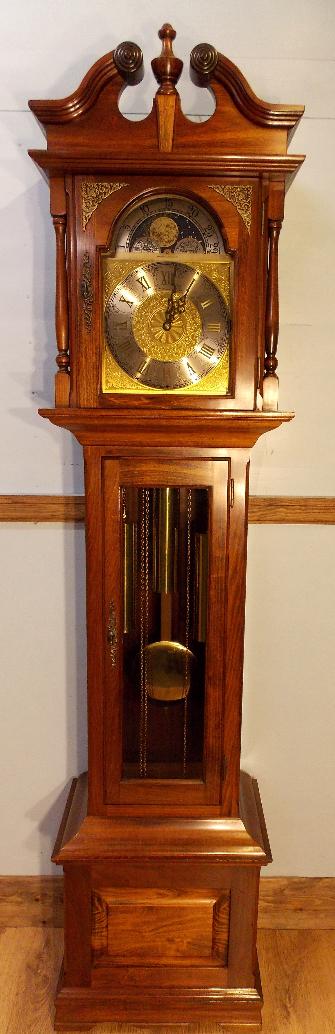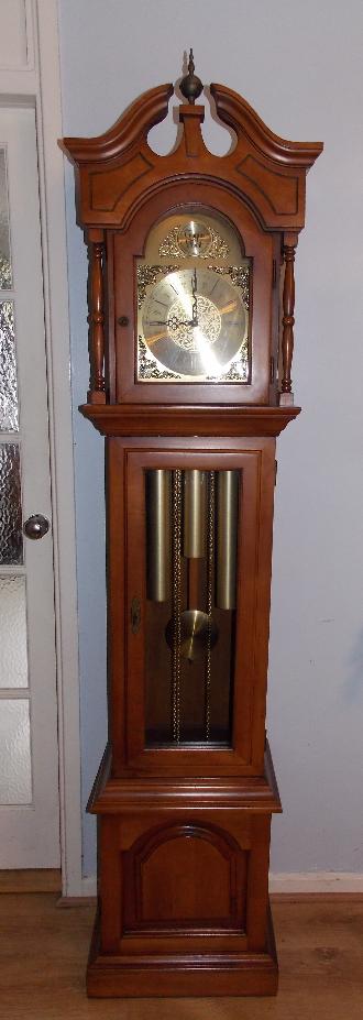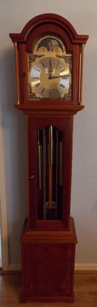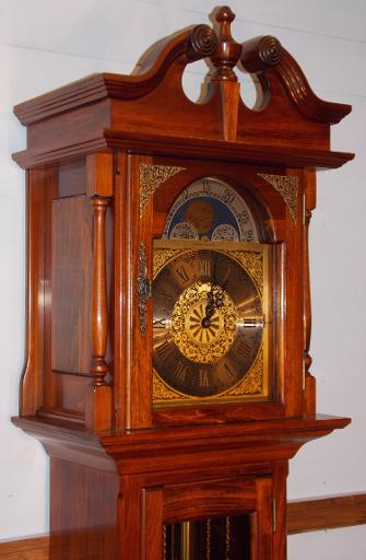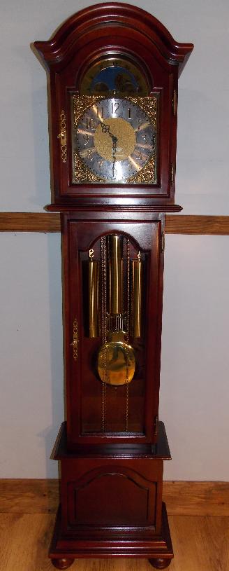 The clock is extremely well constructed in solid Mahogany. This is a top quality item, and would enhance any home! I have taken a number of pictures which will hopefully show the quality and condition of this beautiful clock.