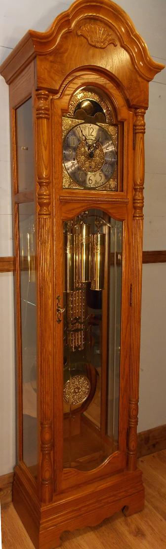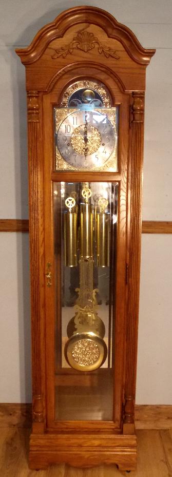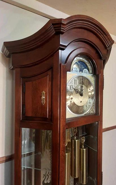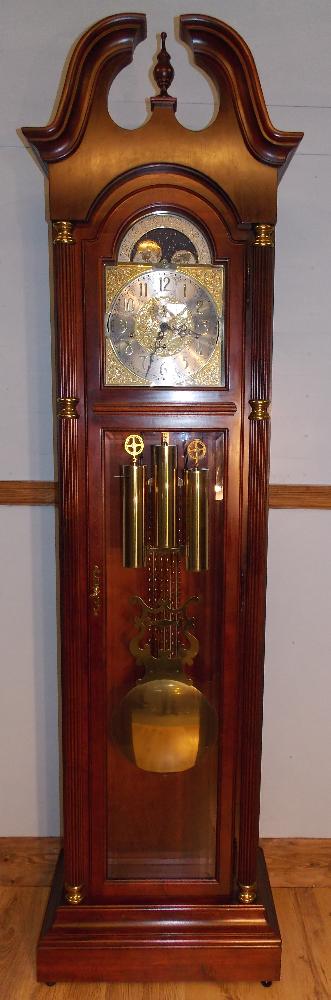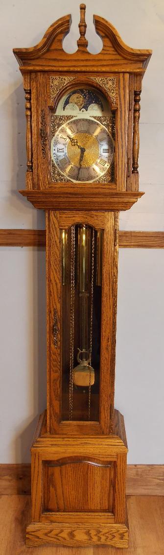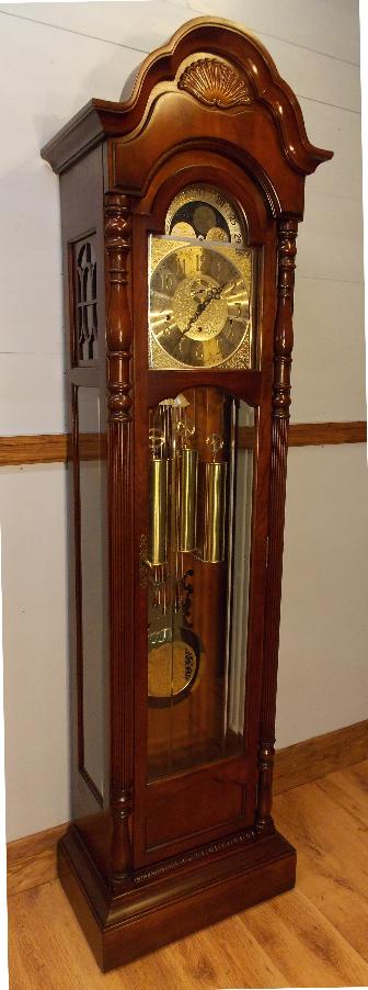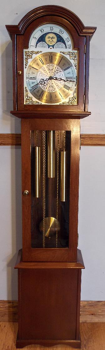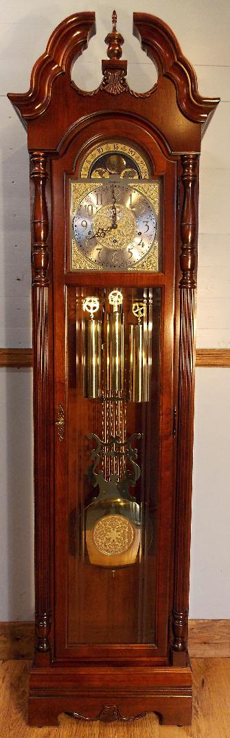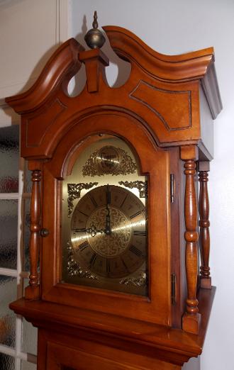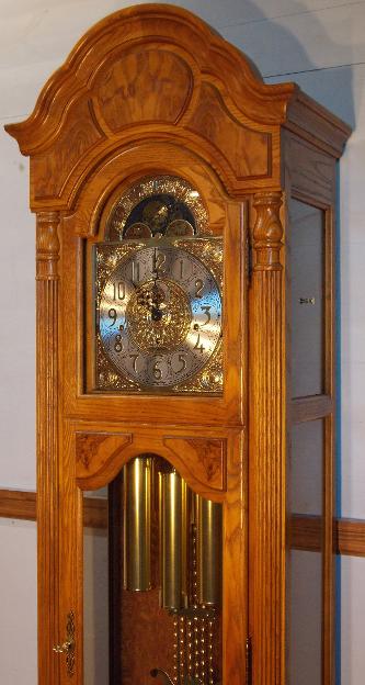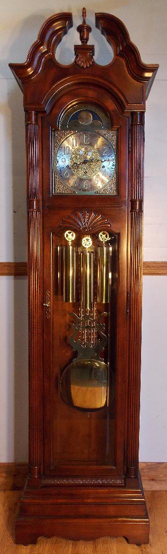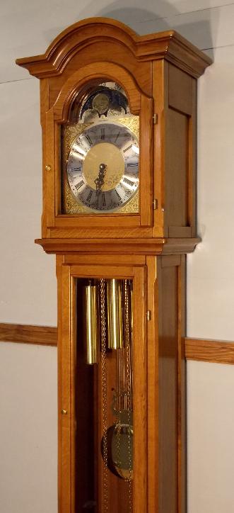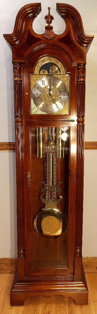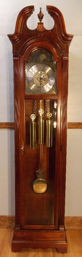 The clock is extremely well constructed in solid Mahogany. This is a top quality item, and would enhance any home! I have taken a number of pictures which will hopefully show the quality and condition of this beautiful clock.