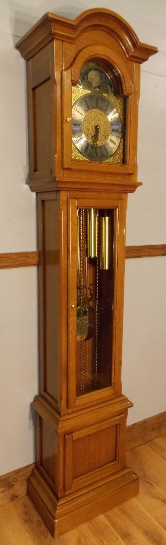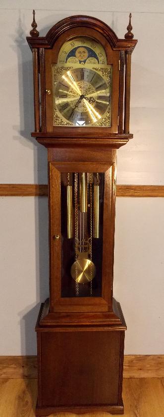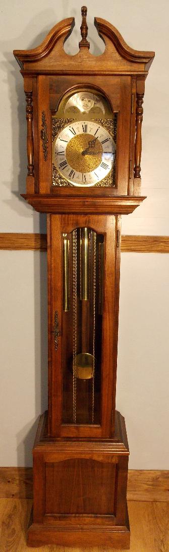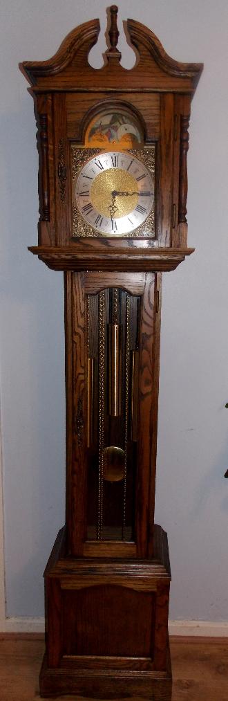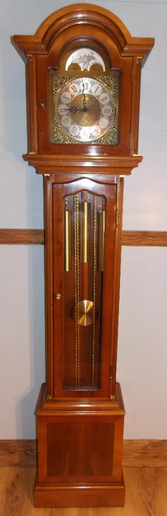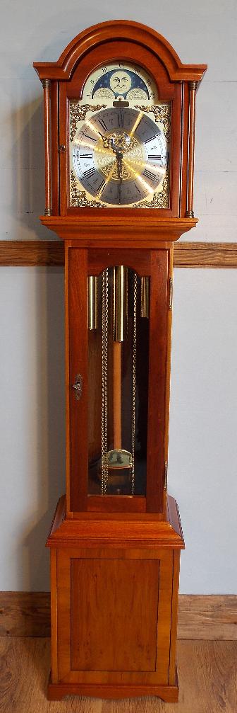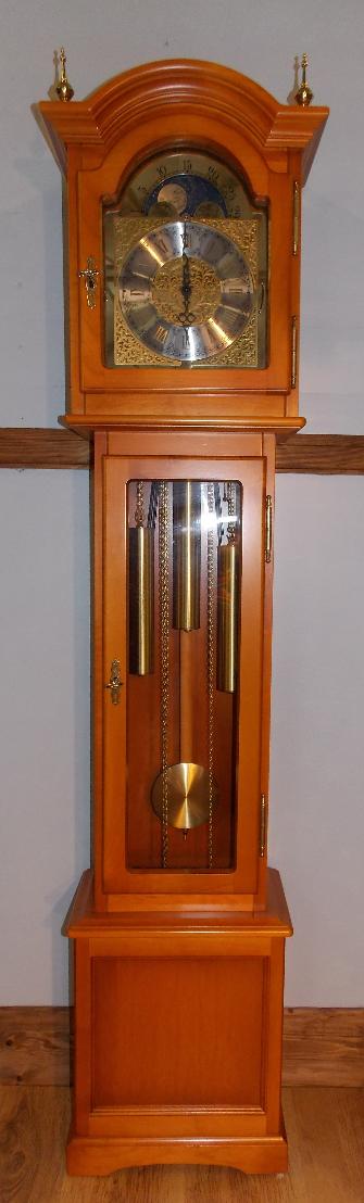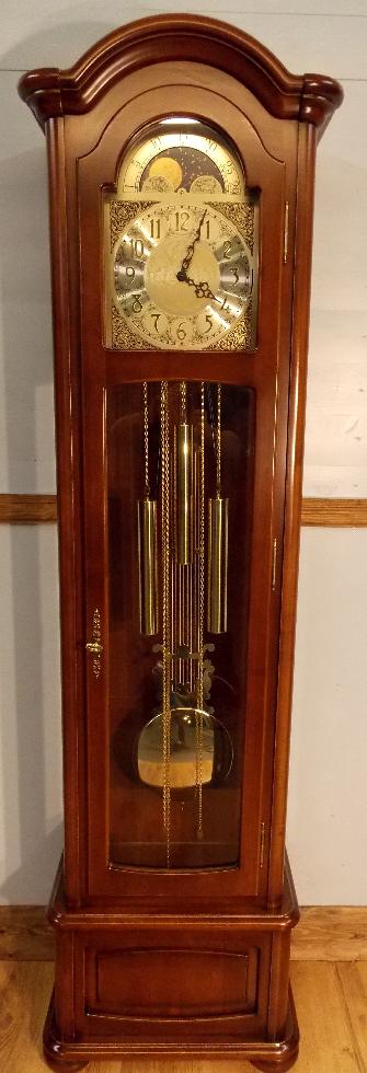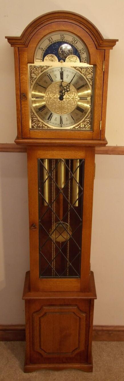 The clock has an Hermle weight driven movement installed. It is an 8 day movement and is weight driven on chains. I am unsure of the history of the clock hence unsure when it was last serviced so please bear that in mind. Should the buyer prefer the clock to be serviced then I will be happy to do that. (Please allow a week for this). However, I can confirm that the clock is currently in excellent working order!