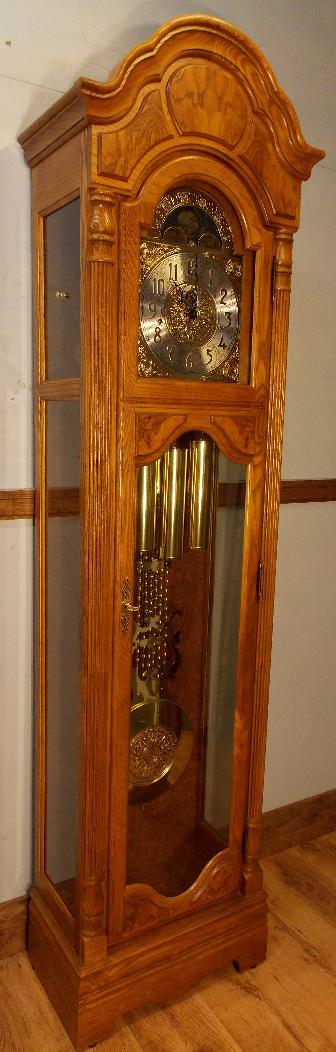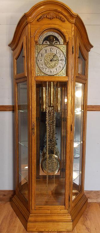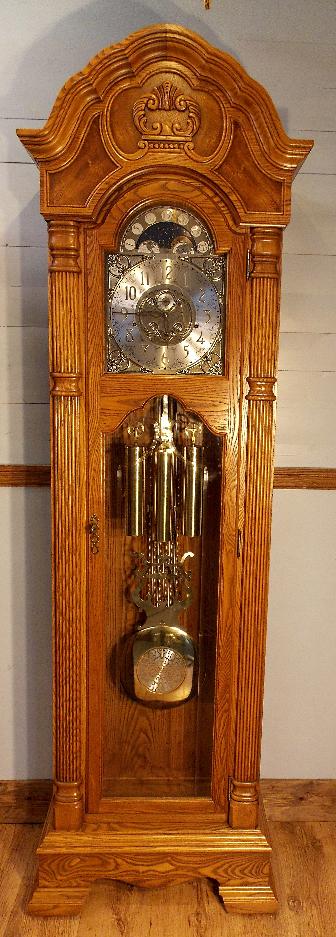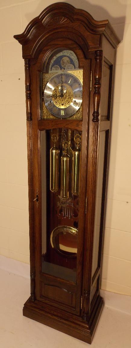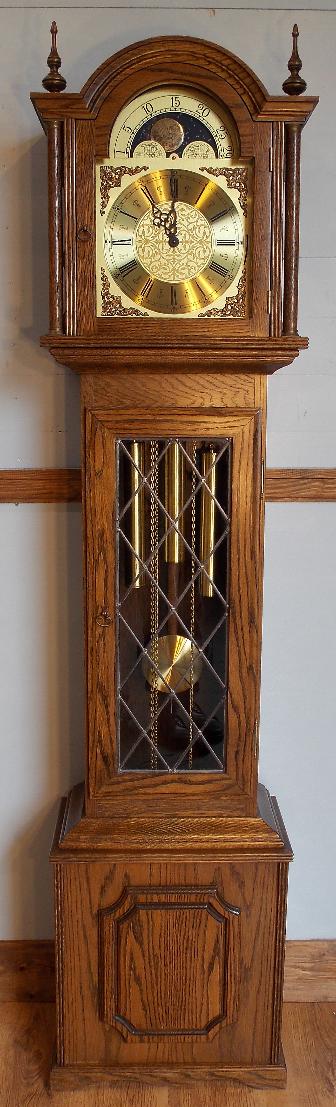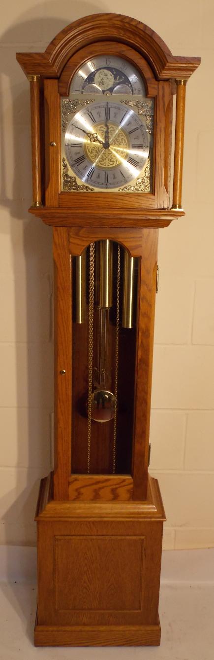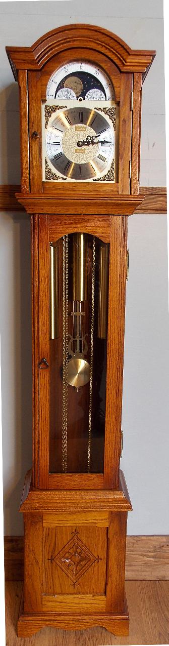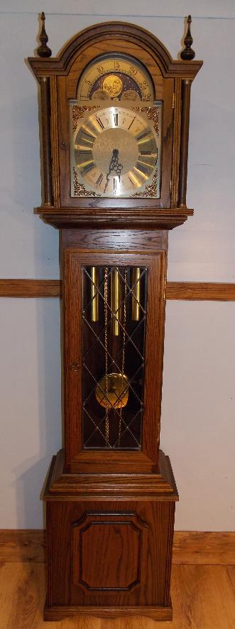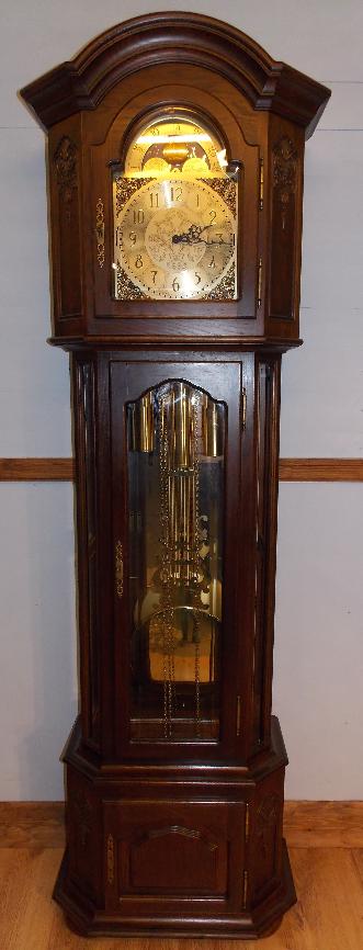 The clock has an Hermle weight driven movement installed. It is an 8 day movement and is weight driven on chains. I am unsure of the history of the clock hence unsure when it was last serviced so please bear that in mind. Should the buyer prefer the clock to be serviced then I will be happy to do that. (Please allow a week for this). However, I can confirm that the clock is currently in excellent working order!