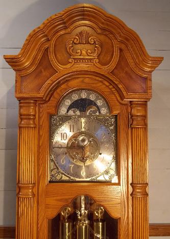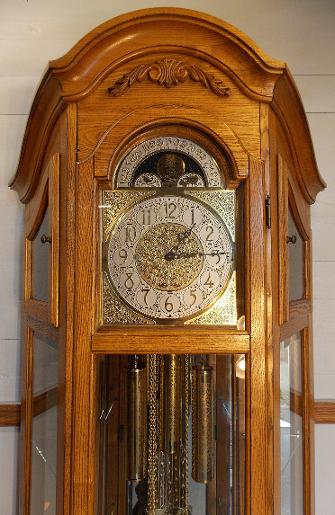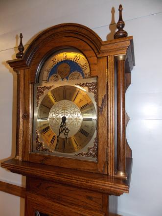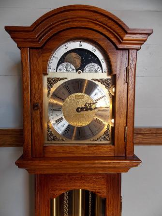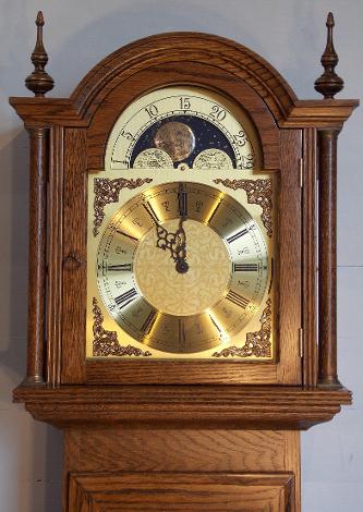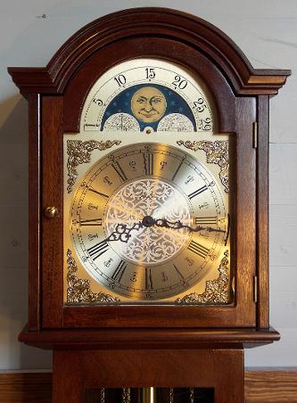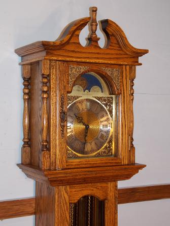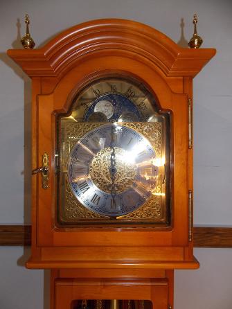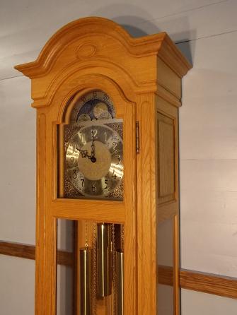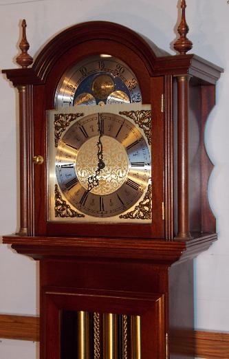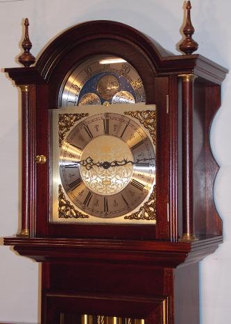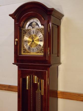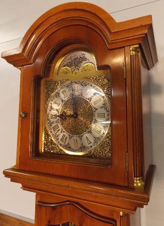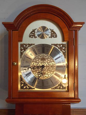 The movement has Westminster chimes and has the option to silence the chimes. The chimes can be silenced by adjusting a push rod that is located in the waist of the clock, access to which is via the pendulum door. The rod is also used to select the chimes again.