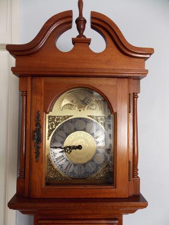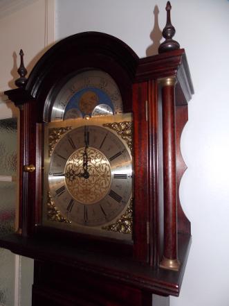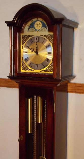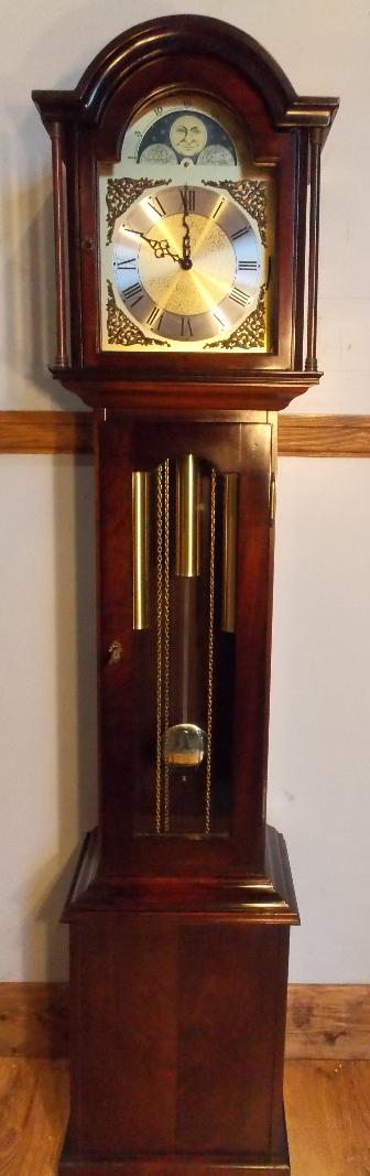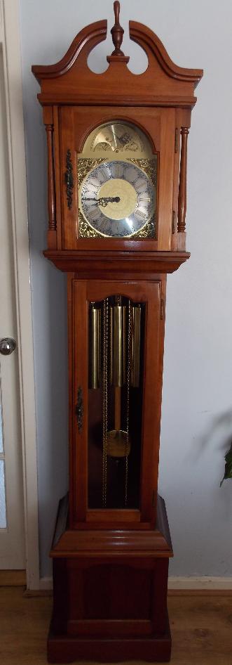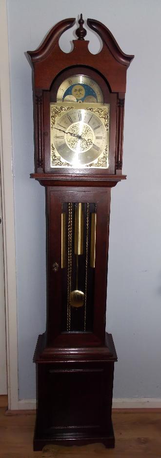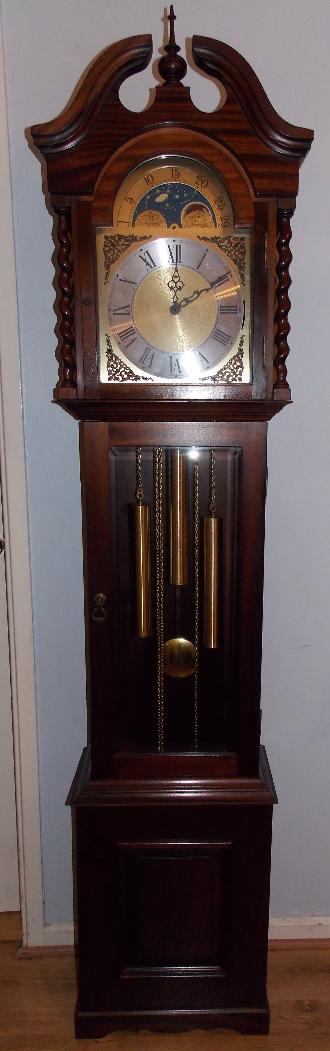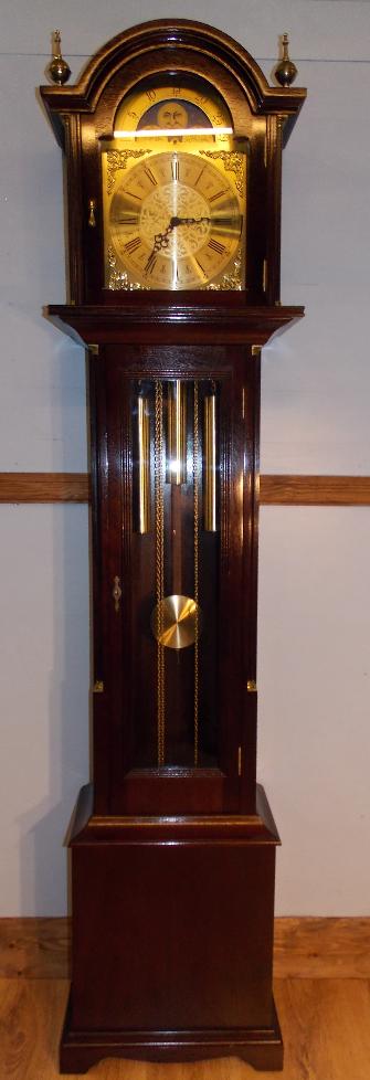 This clock is in excellent used condition and is made from solid Mahogany throughout. It does have some very slight imperfections here and there but very small and hardly worth mentioning. It has been finished in a shade of light-medium Mahogany. I would estimate the age of the clock to be around 35 - 40 years of age.