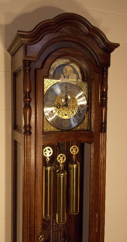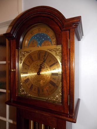 The movement is powered by 3 brass heavy weights in excellent condition. There maybe a few minor imperfections here and there but all insignificant!. The weights are very clean and presentable. The dial is in excellent condition... it is a quality brass dial with a very ornate moon disc. Likewise the pendulum is in excellent used condition.
