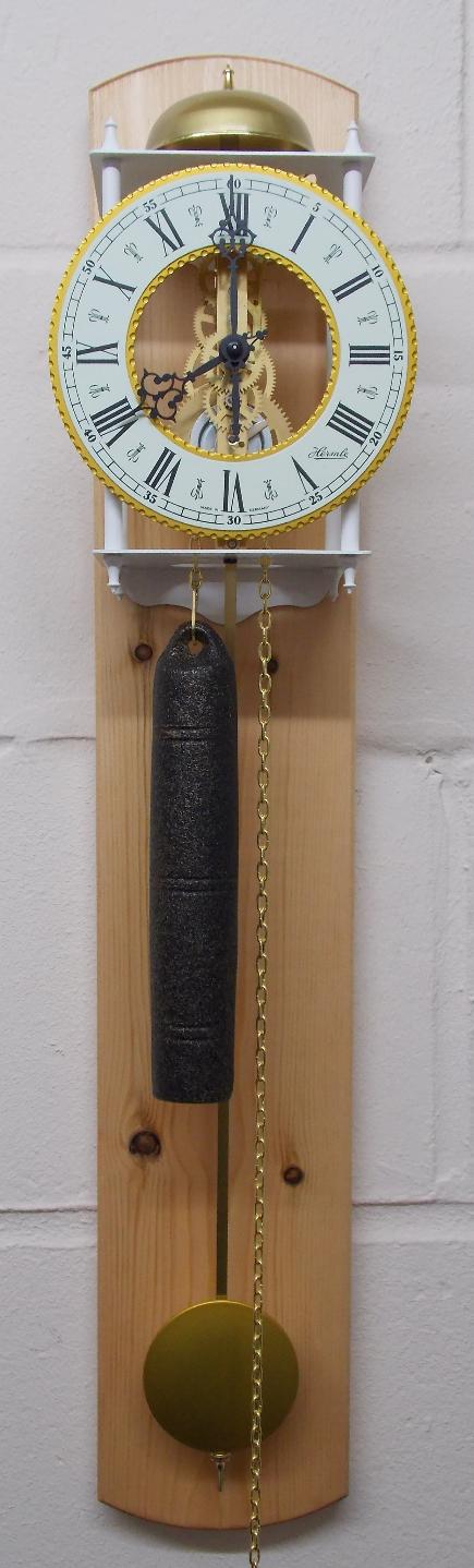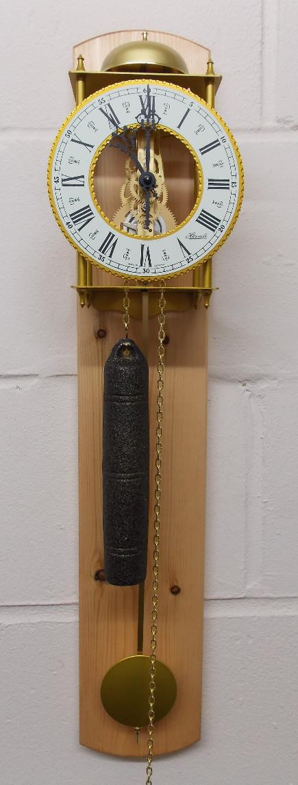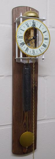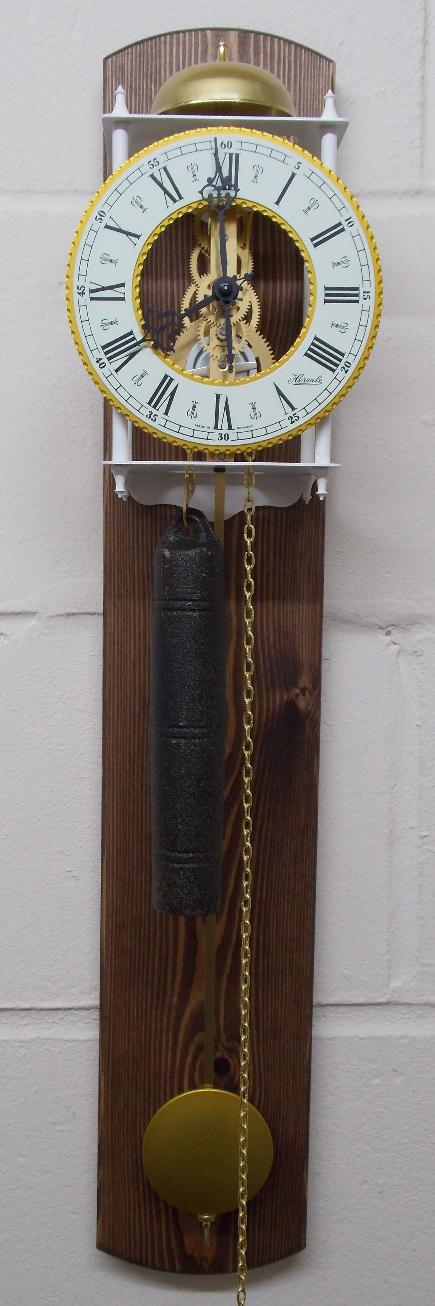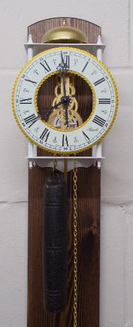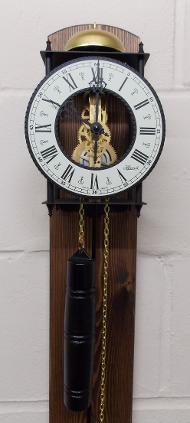 I am pleased to add a variety of 4 different weight driven pendulum skeleton regulator wall clocks. The clocks are constructed from wrought iron with cast chapter rings. These clocks are brand new and are excellent quality!